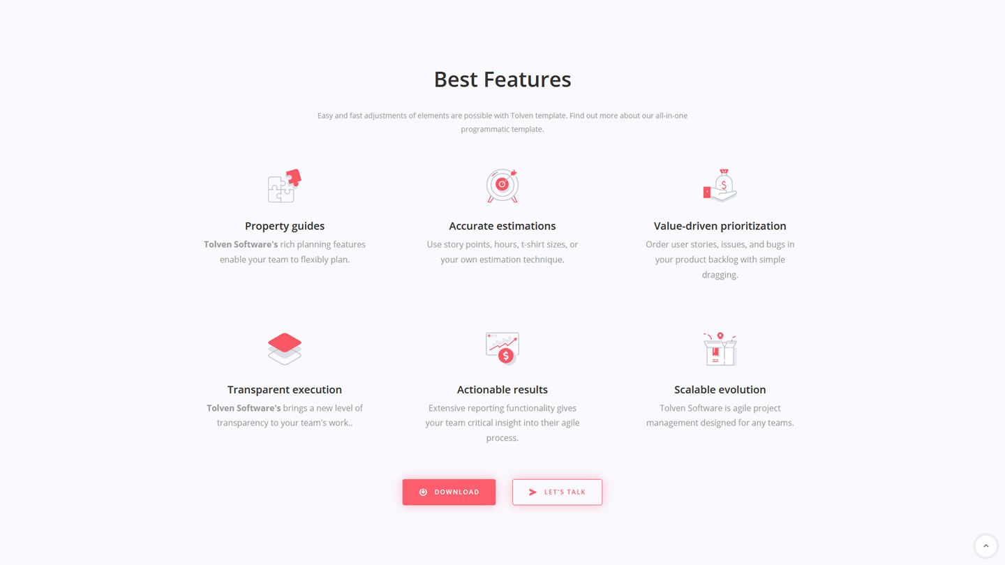 Tolven is a Landing Page CMS pro template by cmspro.club built using the cms pro framework. Features include side dot menu, all the elements you’ll need for a standard Landing Page including clear intro CTA button, services, team, testimonial, pricing table and contact form.